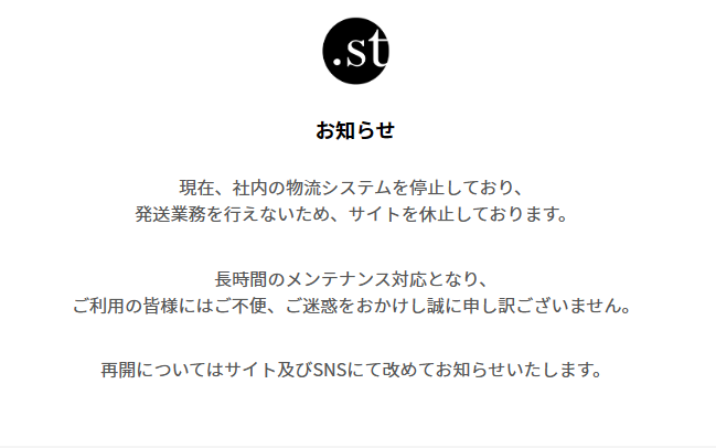 発表時にユーザー、従業員、取引先の情報流出は確認されていないという。ただ、物流システムを停止しており、発送業務を行えないため、自社通販サイト「ドットエスティ」を休止した。