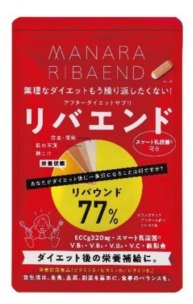 新商品は、「リバエンド」(=画像、税込6225円)。さまざまなダイエット法の実践により一時的な体重減少など、繰り返すリバウンドに対応する。サプリメントの取り扱いは、2アイテム目。