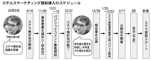 ステマ規制は昨年4月、自民党・消費者問題調査会で、景品表示法に基づく対応を求める提言が示された。9月に「景品表示法検討会」から独立して検討会を設置。ハイペースで計8回の会合を終え、12月28日、報告書をまとめた。告示への指定は来年度を想定していたが、河野太郎大臣が年度内の前倒しを指示。過去の告示は、施行まで3~6カ月。早ければ、今秋にも規制がスタートする。