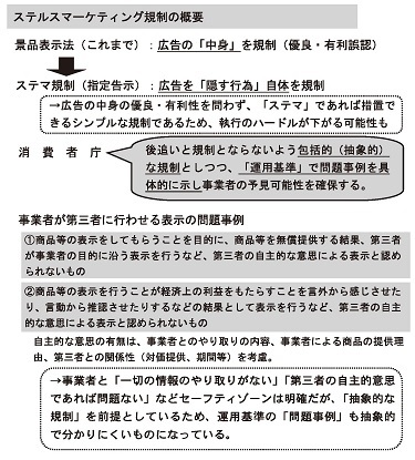 消費者庁は今年1月、ステルスマーケティング規制に対する事業者の予見性確保のため、運用基準案を公表した。