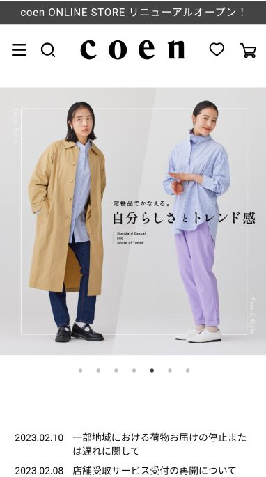 カジュアルウエアを展開するコーエンは2月7日、自社通販サイト「コーエンオンラインストア」をリニューアルオープンした(