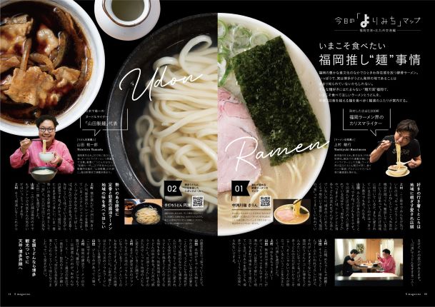 画像(下))では空港や主要駅から行きやすいスポットに厳選して紹介する。なお、スマートフォン上で地図表示とリンクするQRコードも合わせて掲載。乗客が就航地に到着後、紹介したスポットに行きやすいような工夫を施している。このほか、北九州の食や文化を取り上げた機内モニターで放送する番組と連動した読み物なども掲載する。