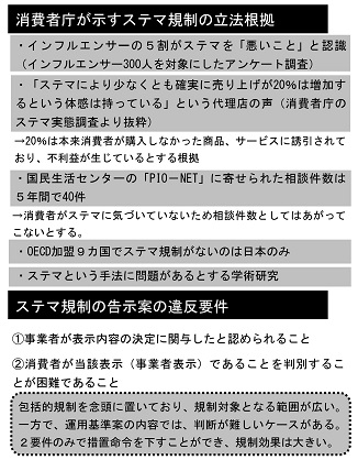 ――「表示内容の決定への事業者の関与」「消費者が当該表示であることを判別することが困難なこと」の2要件を満たせばステマとして規制できる。