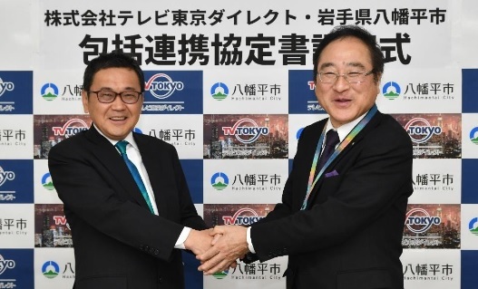 今後は情報番組「なないろ日和!」のほか、食品の通販番組「虎ノ門市場」、クラブツーリズムと組んで観光ツアーを紹介・販売する番組「ハーフタイムツアーズ」などTXDの他の番組でも八幡平市の魅力や特産品などを紹介する取り組みなどを行っていく考えのようだ。このほか、テレビ東京グループ内で情報を共有し、各番組の取材やイベント企画などを推進していくという。番組による八幡平市のPRのほか、同市の広報力向上のため、TXDやテレビ東京の番組のプロデューサーらを講師として派遣して、職員研修にも協力する。TXDの遠藤社長は「当社の強みである番組を軸とした情報発信や商品開発力、販売網などのリソースを活用し、その魅力を全国に届け八幡平市の地域活性化の一助となれれば」とコメントした。