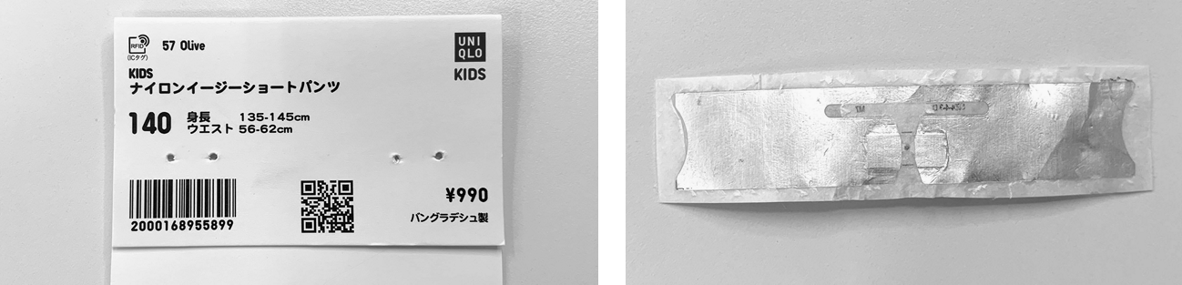 ユニクロのタグ表面は普通のタグと見分けはつかない 中にはRFIDタグが内蔵されている