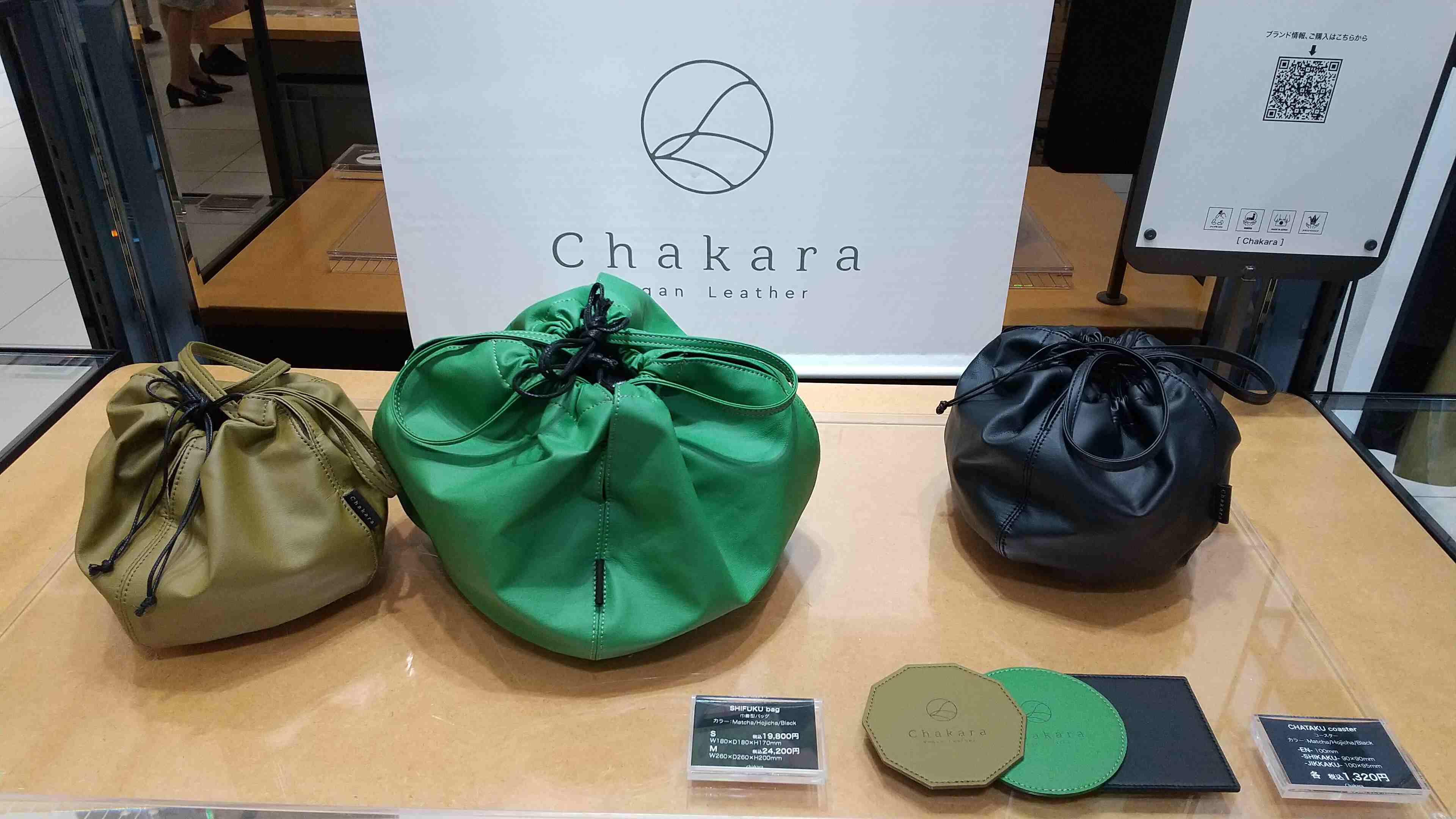 例えば、「明日見世」初出店のブランドとしては、自動車内装用の合成皮革を手がける共和レザーのD2Cブランドの第2弾「Chakara(チャカラ)」の巾着バッグやコースターなどを提案する(