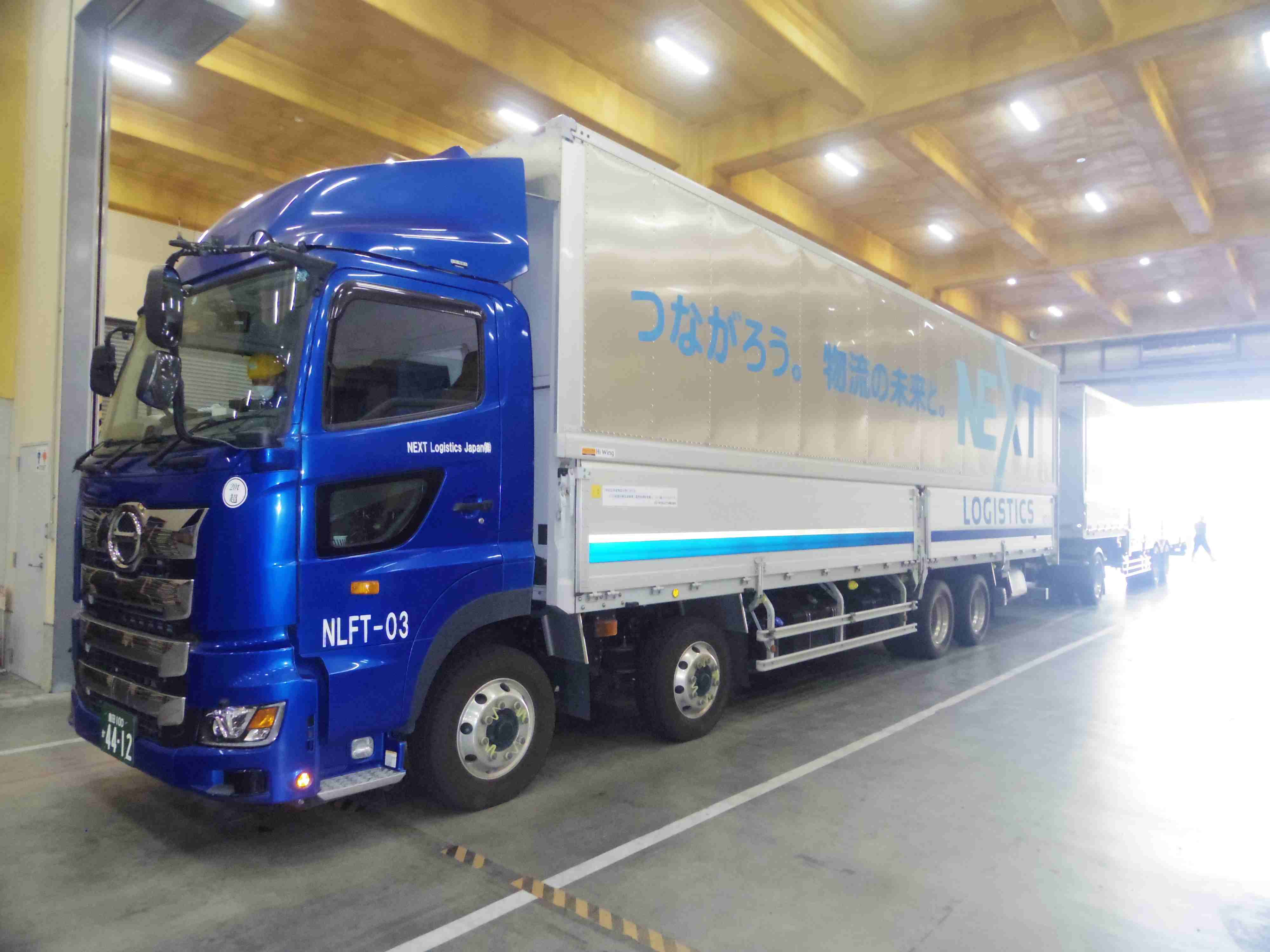 2024年問題を見越し、ダブル連結トラックによる共同物流で成果を挙げているNEXT Logistics Japan(=NLJ)。同社は複数の企業がドライバーと車両をシェアして、積載率を高めた上で輸送を行う。ドライバーの労働時間も短縮して、効率的な輸送を可能にしており、現在、関東・関西間を運行している。トラック走行自体を減らし、二酸化炭素排出量の削減が可能だ。今後、自動運転、電気自動車化、荷役の自動化などを計画し、さらなる効率化を図っていく。
