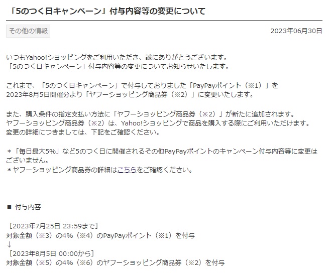 8月からは「5のつく日」の付与特典を「PayPayポイント」から「ヤフーショッピング商品券」に切り替える。商品券は、同モールでのみ利用できるため、出店店舗からすれば、リピート購入が期待できるわけだ。同社でも「商品券利用によるヤフーショッピングでの再購入の効果により、流通額増になる」(広報室)と見込んでいる。