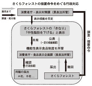 ――処分は、食表課が受理したものを表示対策課(以下、表対課)が問題視し、処分を受けて食表課が企業に確認する構図だ。職分に踏み込み、食表課が窓口に見える。