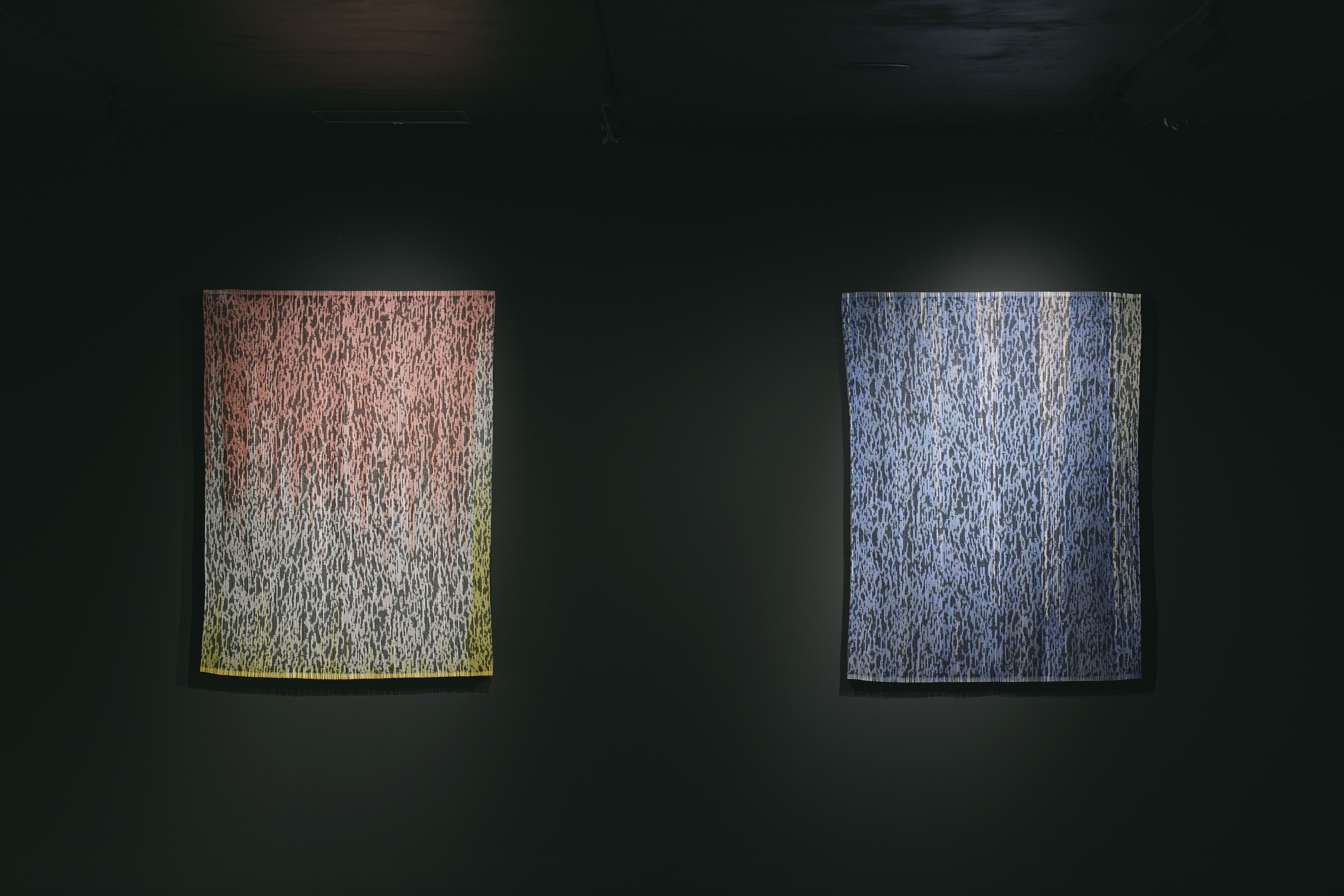今回、海外展示会で注目を集めた「スターツプライズ2022」栄誉賞受賞作品のうち、周辺環境の温度に応じて呈色する織物「ウェーブオブウォームス」と、糸の中を染料が移動することで色が変化する「ドリフティングカラーズ」に加え、国内外で一般初公開となる、現在研究開発を進めているプロトタイプシリーズのうち、音を発する織物、表面と影の色が異なる織物、発光する織物など6点を含む作品合計8点を展示する。
