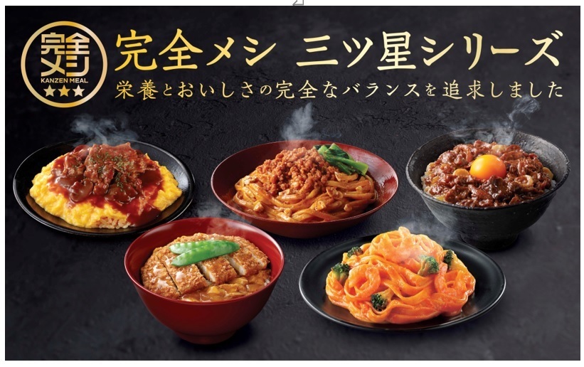 日清が販売中の「冷凍完全メシ」でもかつ丼やデミオムライス、汁なし担々麺などを展開しているが、これらとは使用している食材などは異なり、例えば「三ツ星シリーズ」のかつ丼ではかつに使用する肉には熟成ロース肉を、また、焼津産鰹節やあご、煮干し、昆布、椎茸の5種の合わせ出汁を、トマトクリームパスタではオマールエビや北海道産生クリームなどこだわりの食材を使用している。すべてレンジで温めるだけで食べることができる。商品は5つセットで販売(=