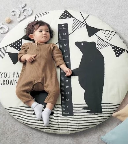 「フォトジェニックな寝相アートが楽しめるベビー用円形マルチマット」(