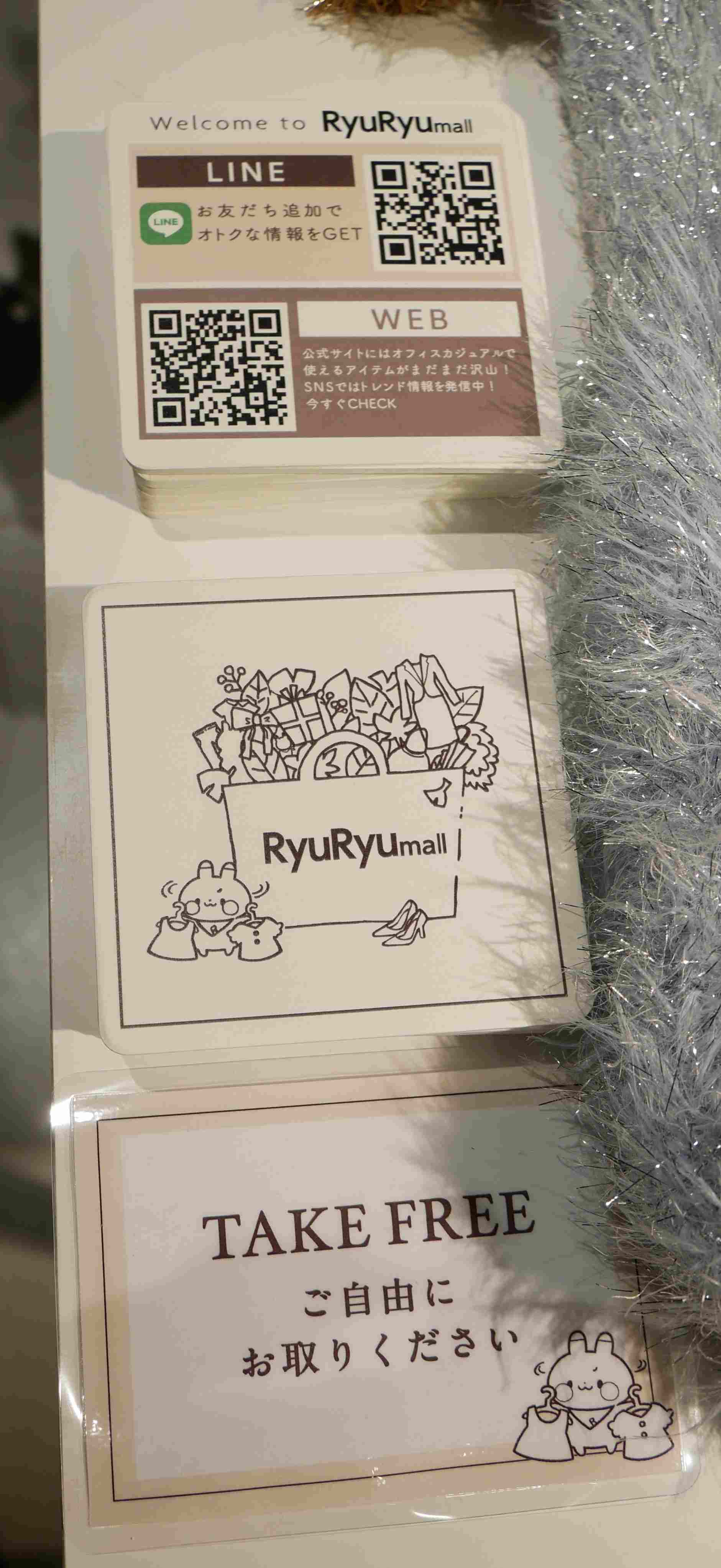 来店客のほとんどは、リュリュモールの存在を知らないという。そのため「99%が新規顧客になるという点が大きい。また、価格の安さと品質の高さに驚く顧客が多いので、当社のアイテムを大いにアピールできているのではないか」(北舛課長代理)。こうした顧客にリュリュモールへ来訪してもらうため、商品には全てQRコードを記したカードを付与。また、店内には「LINE公式アカウント」の「友だち登録」を促すカードも置いている。