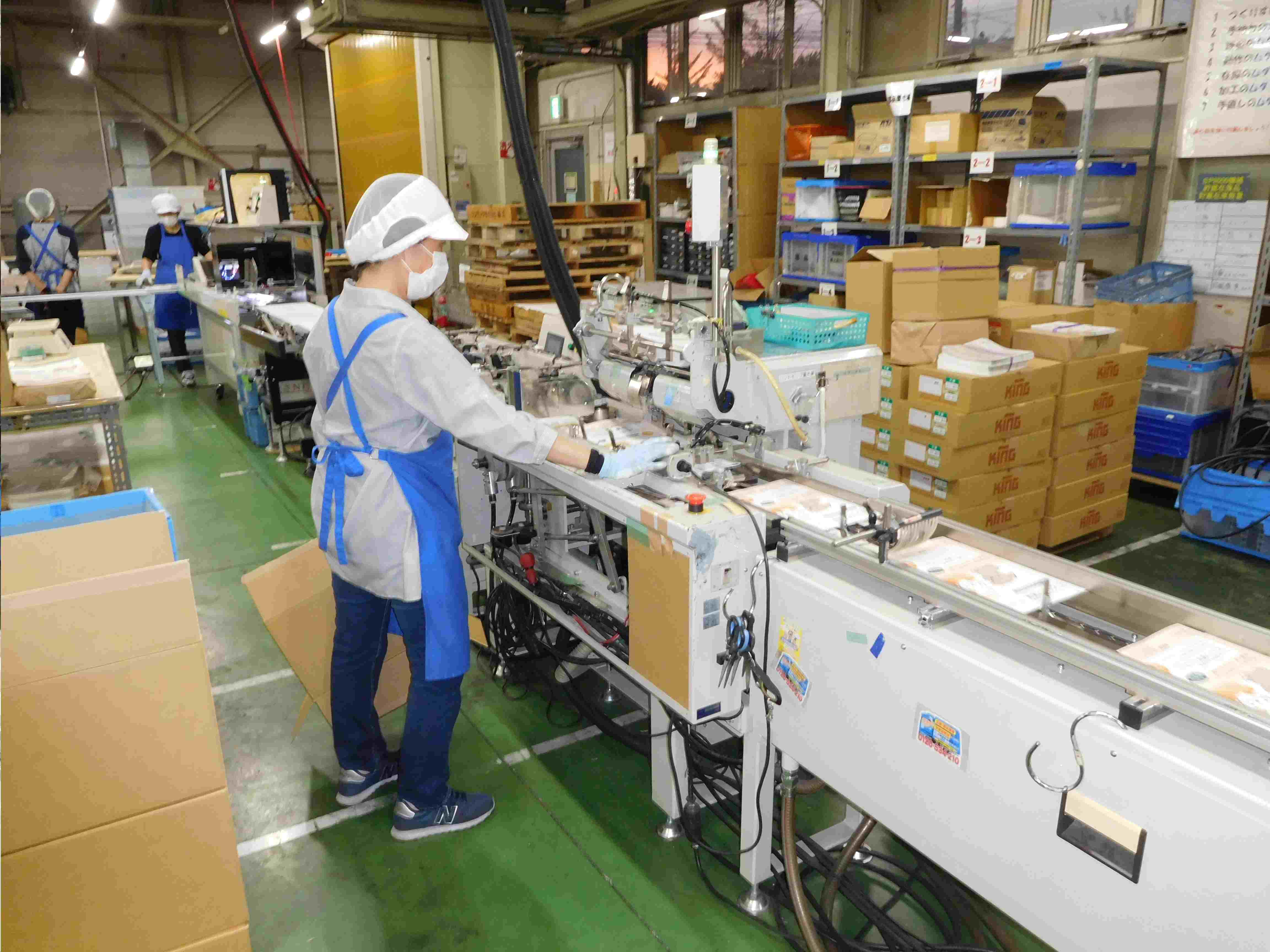 専用機器としては最新鋭の自動包装機があり、中元・歳暮期のギフト商品など一般的なキャラメル包装を行うことが可能。人の手で行う5分の1程度のコストで、素早く作業が完了する。