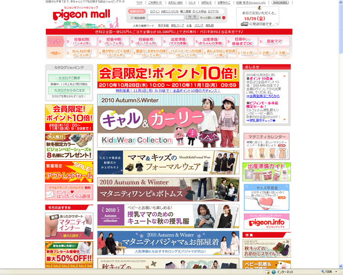 同社がネット販売を開始したのは01年頃。当時は卸売りとの関係もあり、ピジョン以外の商品を売ることを前提として、グループ会社の「ピジョンウィル」のマタニティー商品のみをピジョンモールで販売開始した。その後、取扱商品の拡大とともにピジョン商品も販売するようになっていったという。同社は「当初は定価で販売していたが、少しずつセールも始めていった。リスクを取らない形でノウハウを蓄積していった」(Eコマースグループ)とする。
