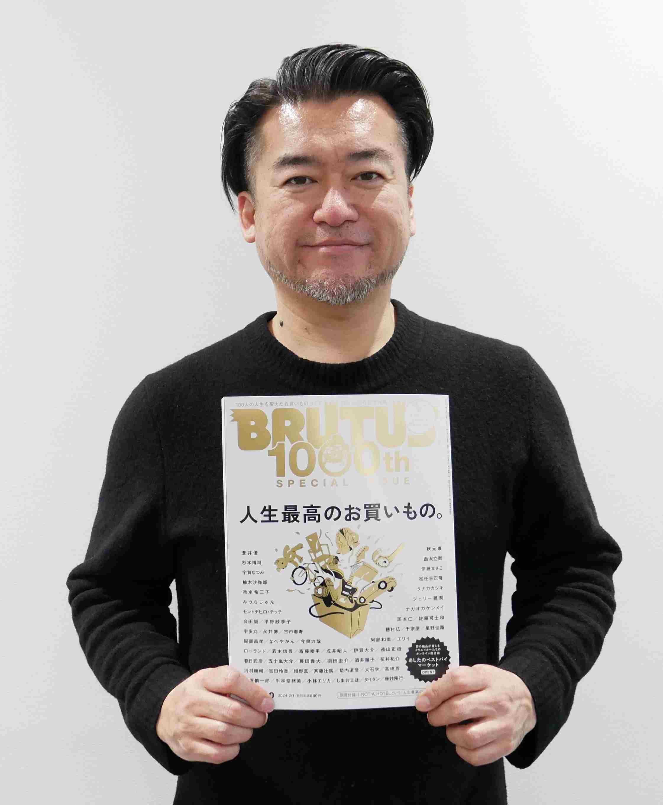 ブルータスでは過去2回、通販関連の企画を実施しており、今回が3回目の取り組みとなる。さまざまな著名人に「人生最高のお買い物」というテーマで聞いた話を特集記事で掲載、その上で「商品が集まる場」として通販サイトを開設した。同誌編集長の田島朗氏は「1000号を記念し、さまざまな著名人やクリエイターに登場してもらい、『買い物』という共通のテーマを設けることで、その人の人生観や価値観などが見えてくる特集にしたいと考えた」と企画の趣旨を説明。「クリエイターを前面に出す企画なので、同じようなテンションで買い物ができるサイトにしたい。『BASE』は非常に親和性が高いのではないか」(田島編集長=写真㊦)。