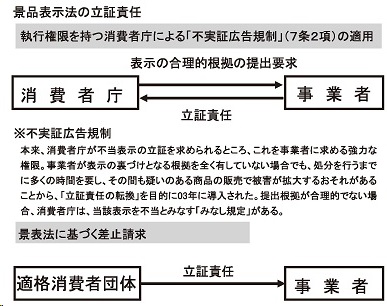 規制は、景表法処分において、事業者に根拠の提出を求めるもの。本来、立証責任は行政側にあるが、立証に時間を要し、その間も被害拡大のおそれがあることを踏まえ、立証責任の転換を目的に導入された。