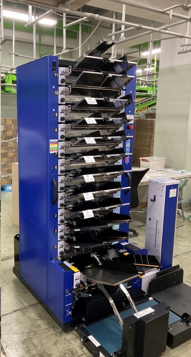 物流代行事業のクライアントは化粧品・健康食品の通販事業者が90%を占めている。例えば定期購入の場合、「初回はこのチラシを入れてほしい」「2回目はこのチラシを同梱してほしい」など、細かな要望をするクライアントも少なない。同社では、チラシの自動丁合機を導入しているため、柔軟な同梱物設定が可能となる。
