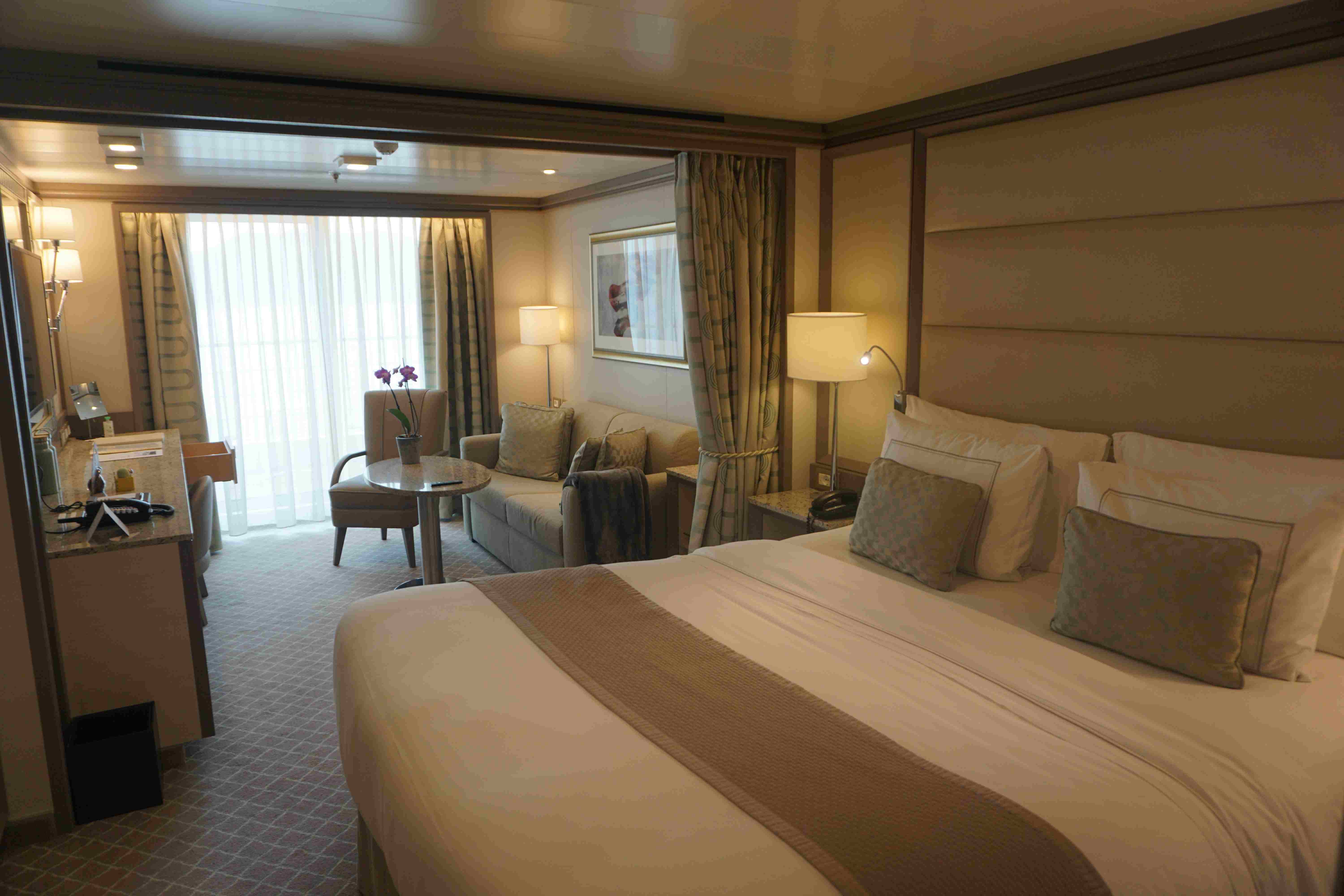 客室は広さ(36~146平米)などによって8種のグレードがあるものの全室ともスイートルーム仕様。寝室とリビングスペースが仕切れる作りとなっており、また、客室にはベランダとバスタブが付いている。特にバスタブは船という限られたスペースであることや文化の違いで外国船にはない場合が多い。日本人客にはうれしい設備といえよう。