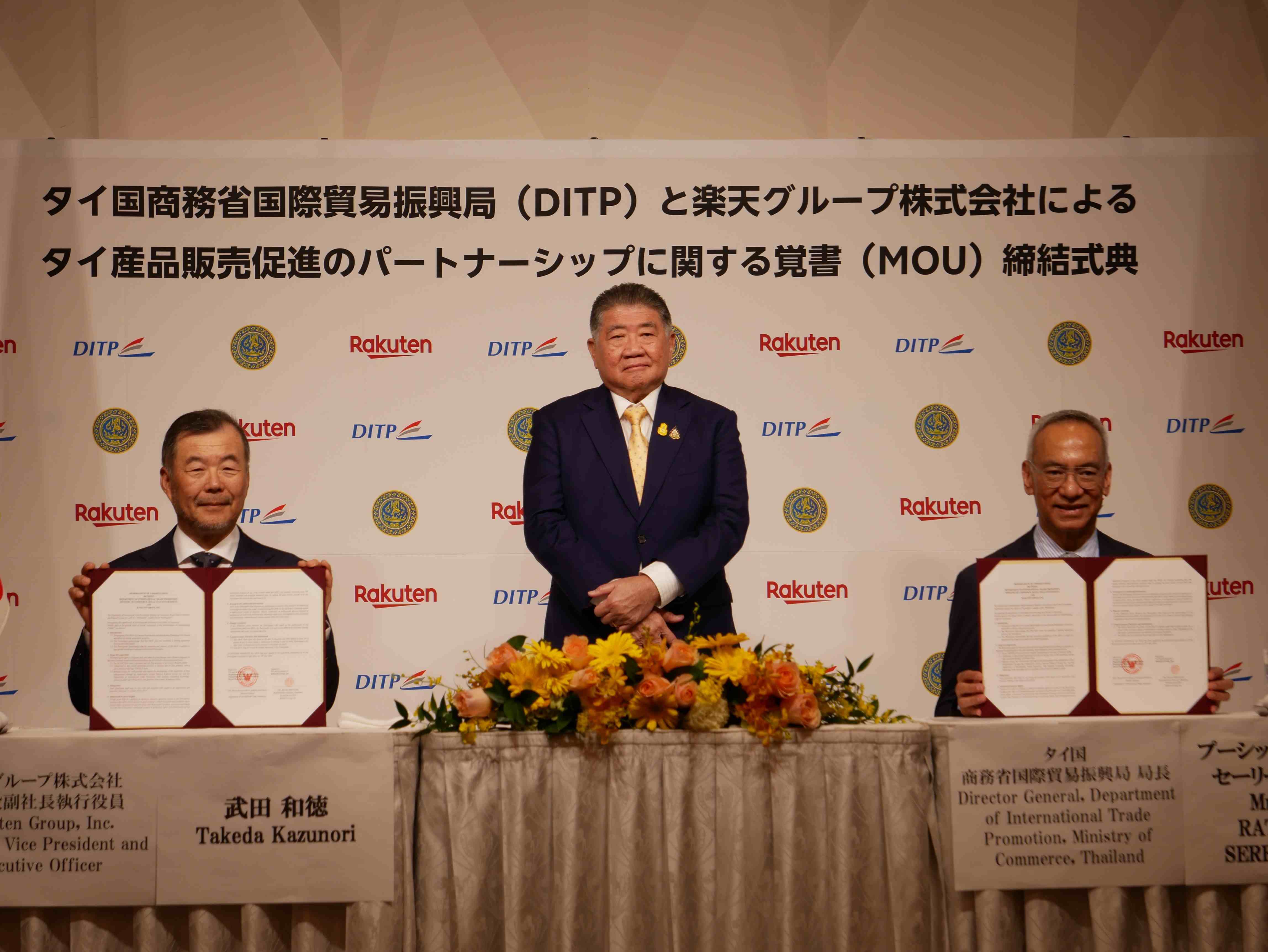 今回の覚書は、DITPが各国の主要ECプラットフォーム運営者と連携して実施している、タイ産品の認知拡大や販促を目的とした「トップタイ」の一環。これまで9カ国・地域でプロジェクトを展開しており、日本での連携先として楽天が選ばれた。