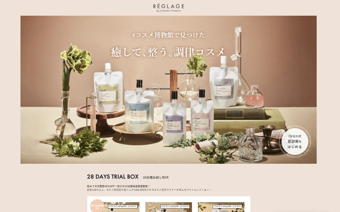 ECで展開するのは、新ブランド「REGLAGE(レグラージュ)」。ブランド名はフランス語の「調律」から。適したスキンケアの選択に悩む層が、自分に合った商品を見つけられるようにとの思いから命名した。