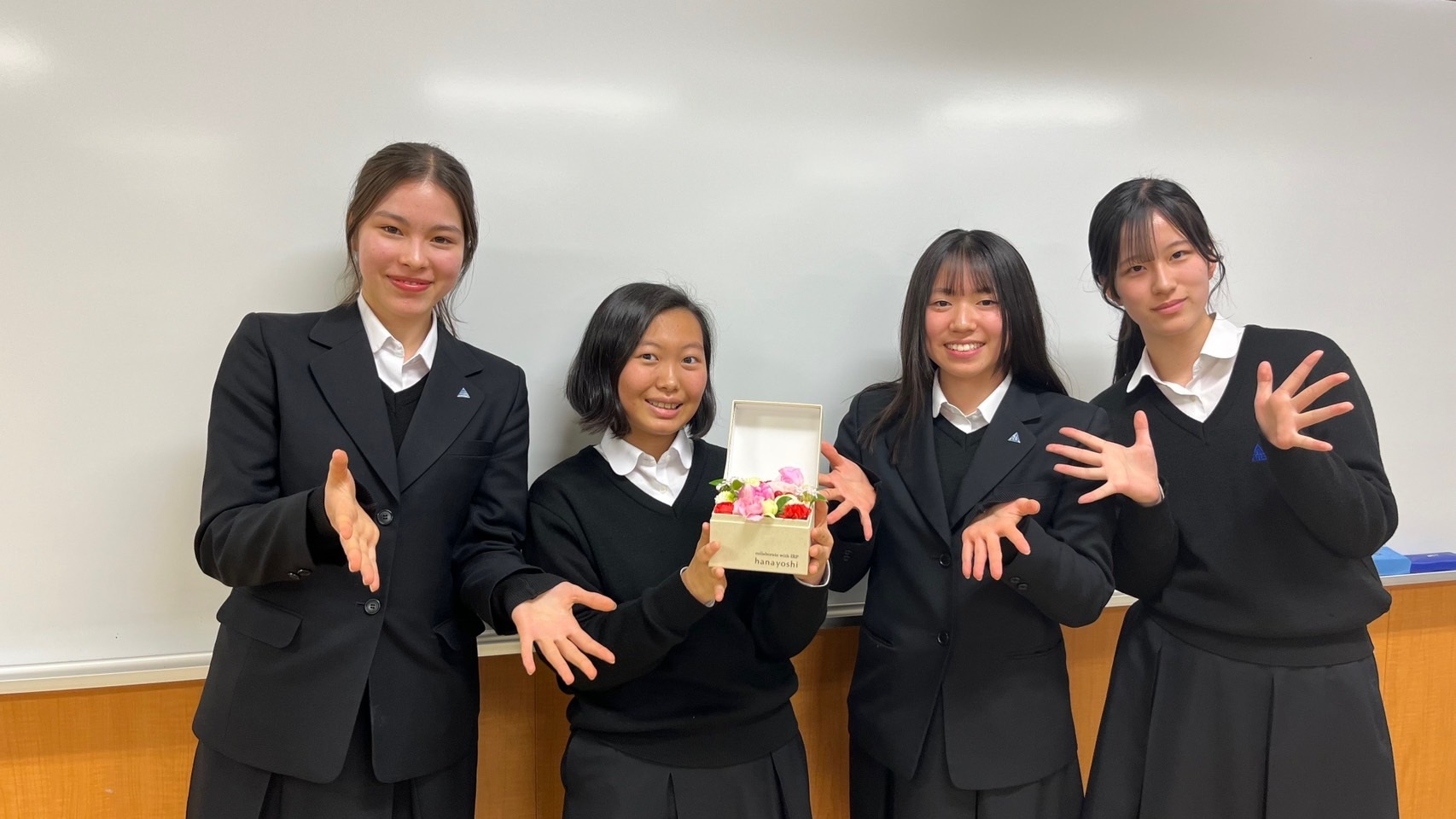 昨年12月には、チームに分かれた生徒たちが花由の担当者に対し、ロスフラワーを解決する商品のプレゼンテーションを、パワーポイントを用いて行った。各チームから案が出されたが、選ばれたのは品川さんのチームが提案した商品だ。