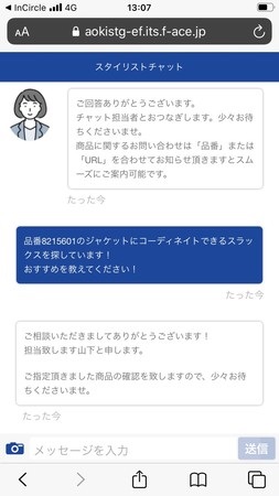 同サービスは2021年11月に始まったもので、顧客の買い物中のちょっとした悩みに、AOKIの販売員がチャットで回答するという。