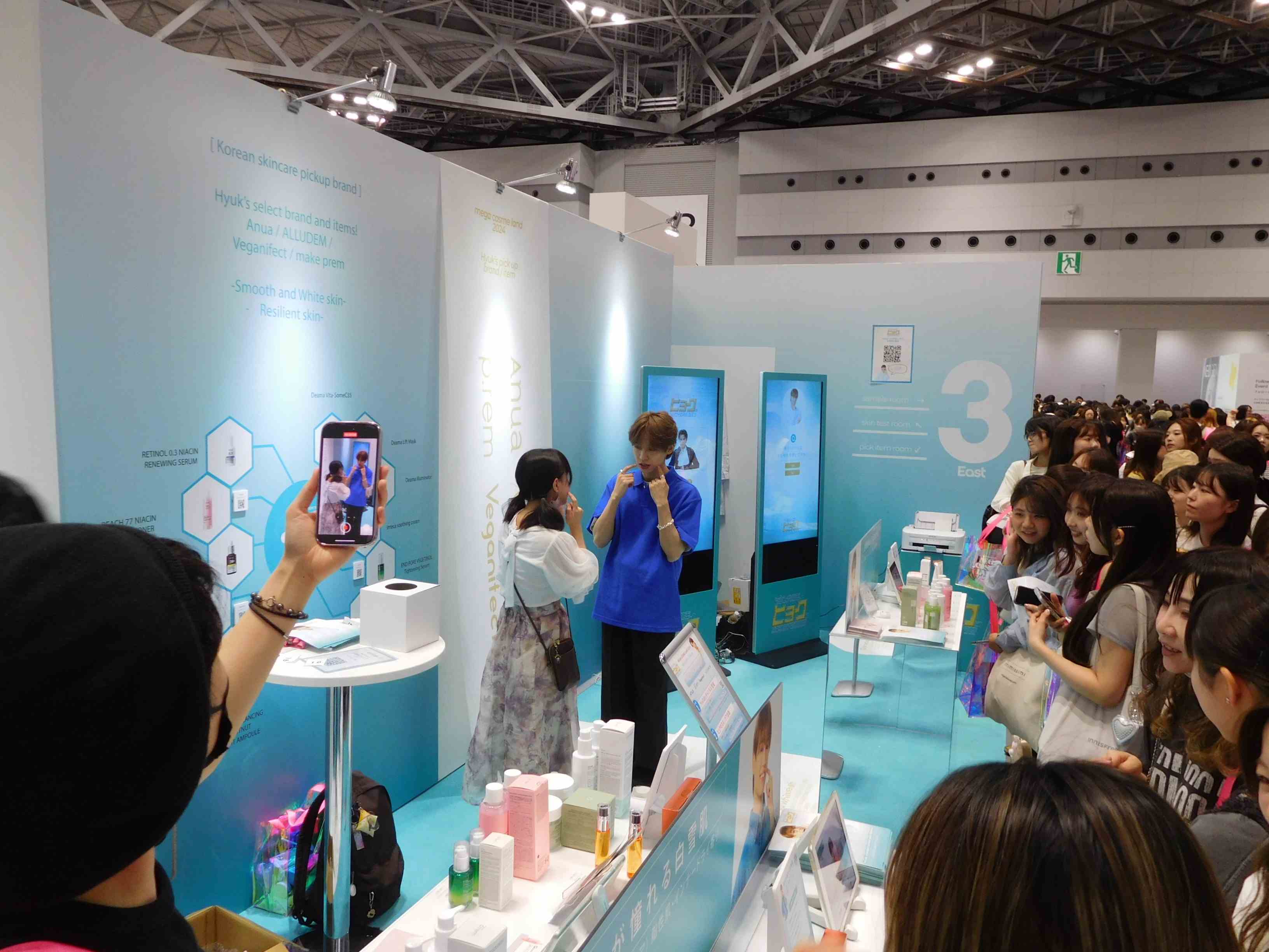 「スキンケアエリア」と「メイクエリア」に分かれた会場内の各出展ブースでは、新商品のお試しや、ゲーム企画、プレゼントなどを展開。中には美容関連で著名なインフルエンサーが登場し、来場者の肌悩みなどを直接聞いて、おすすめのケア商品を提案するといった体験企画も行われた。初日の午前中から会場の外にも行列ができるなど、どの出展者からも予想以上の人出になったとの声があったとする。