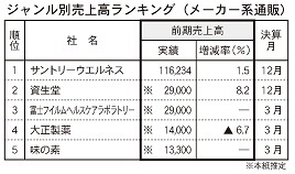 カゴメ(約131億円)、キリンホールディングス(本紙推定・110億円)、森永製菓(109億円)、アサヒグループ食品(本紙推定・100億円)が続く。