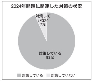 ただ、「物流29024年問題」は通過点に過ぎず、今後はさらに物流分野で人手不足に伴うさまざまな問題が発生するといわれる。今後に向けた対策を実施しているのは約5割だった。