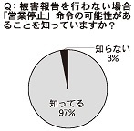 アンケートでは、健康被害報告の義務化について、全社が「知っている」と回答。「営業停止の可能性」も97%が「知っている」とした。今年8月に厚生労働省と消費者庁は、全国8ブロックで健康被害報告の説明会を行っており、これの「受講」は83%。業界への健康被害報告制度の周知は進んでいるようだ。