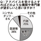 健康被害報告は、医師の診断を経たものとなる。このため、企業から医師へのヒアリングには医療的な知識が不可欠となるが、医師等に「相談できる」との回答は56%で半数にとどまる。今後、有事の相談先が課題となりそうだ。相談先として望ましい機関や専門家は、「医師等」が38%で最も多く、「業界団体」(26%)、「行政機関」(25%)などと続く。業界団体が行政機関と二分するが、行政機関は報告先で相談先ではなかろう。業界団体に期待する向きもあるが、健康被害の問題は、個別の消費者トラブルの側面が強く、高度な医療的な知見も求められ、業界団体にその役割を望むのは難しかろう。