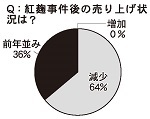 影響は、「売上減」が64%で、「横ばい」は36%。「売上増」はゼロだった。回答企業の減収幅は、5~30%。「5%減」「30%減」は各1社で、「10~20%減」のレンジが多い。