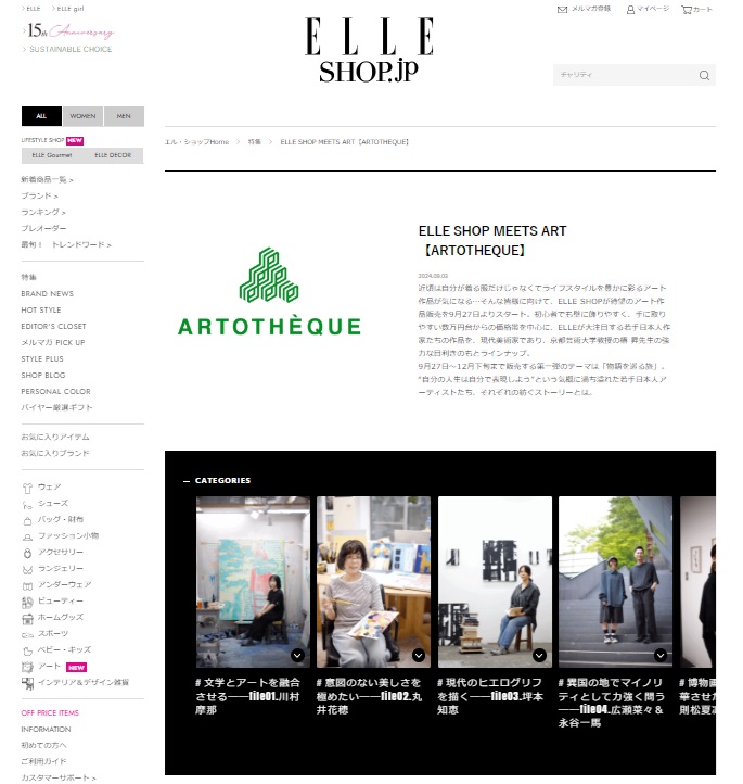 加えて、 10月に東京・天王洲で開催される国内最大級のアートとカルチャーの祭典「MEET YOUR ART FESTIVAL2024」に雑誌「ELLE」のコラボブースを出展。ブース内では「エル・ショップ」で販売するアート作品をインテリアと一緒に飾って実物を確認できるようにする。