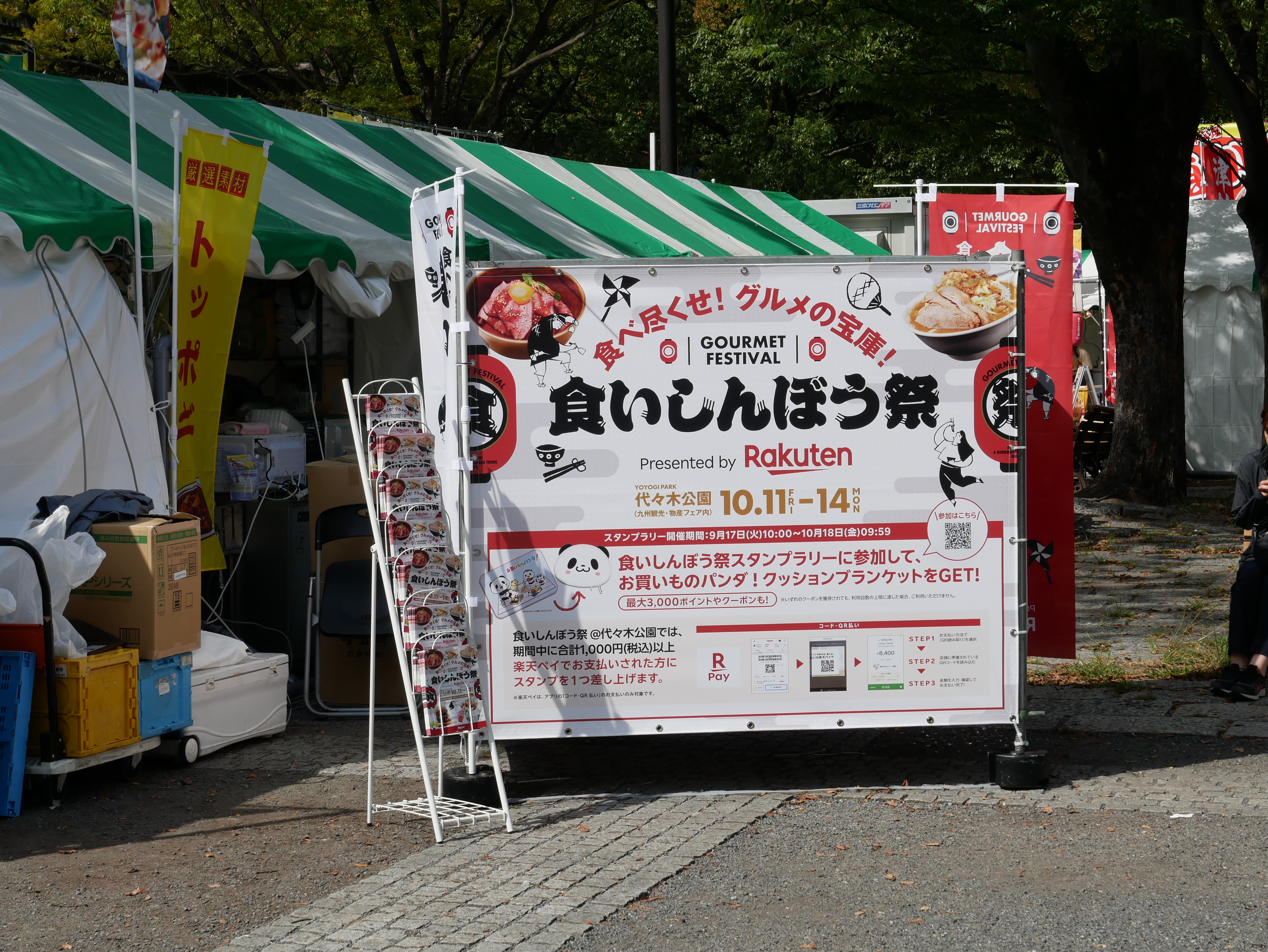 「食いしんぼう祭 Presented by Rakuten」は、代々木公園にて開催された「第15回 九州観光・物産フェアin代々木2024」内の一区画において実施された。32ブースを設けており、このうち楽天市場に出店しているのは21店舗、約半数が楽天の主催するオフラインイベントには初参加という。