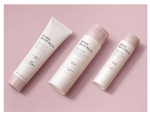 新シリーズは、「オルビス ショットプラス」。洗顔料、化粧水、ミルクの3アイテム(=画像、税込990円~1210円)を展開する。
