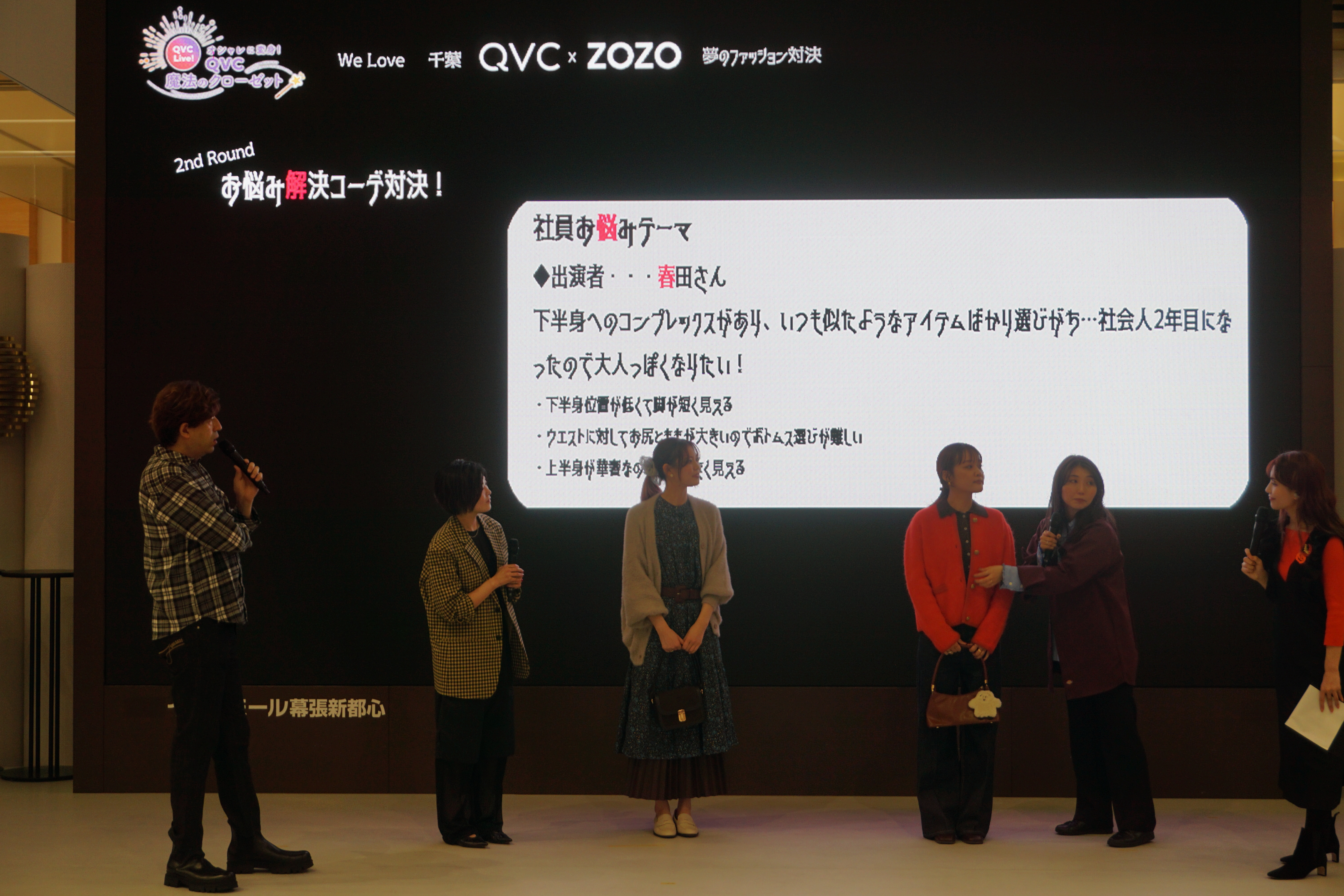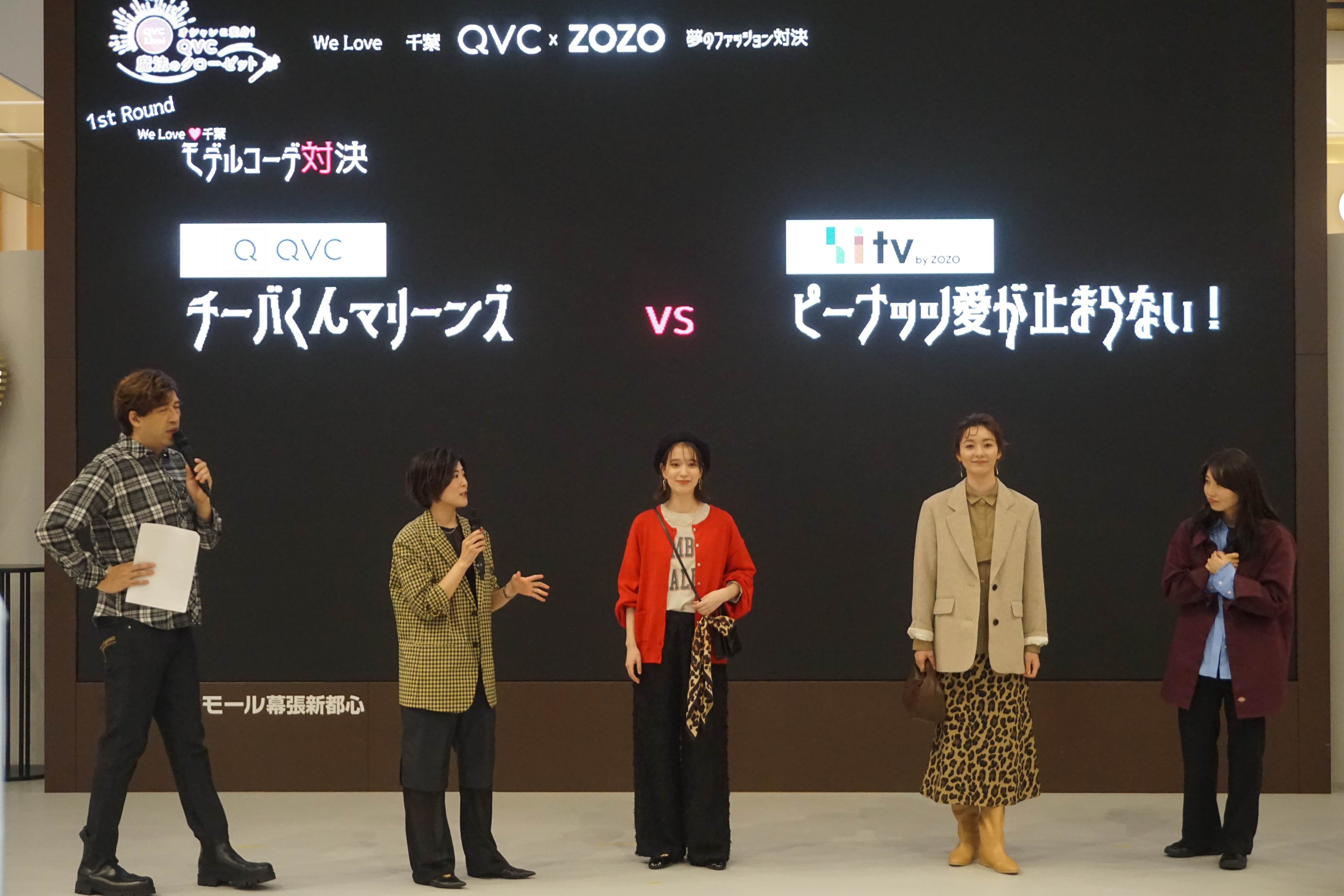 QVCのファッションスタイリストである高野彩香さんとゾゾの公式ユーチューブチャンネルの1つである「niaulab(似合うラボ)TV by ZOZO」に出演し、司会なども務める骨格診断士のミサトさんがそれぞれの企業が本社を構える千葉県への”愛”をテーマに今年のトレンドも意識した自社での取扱商品を使ったコーディネートを提案、モデルが着用して来場客に披露する「モデルコーデ対決」を実施。QVC側は「チーバくんマリーンズ」と題して、千葉県のマスコットキャラクターである「チーバくん」のボディカラーの「赤」を意識した赤いトップスなどと取り入れたコーディネートを、ゾゾ側は「ピーナッツ愛が止まらない!」と題して、千葉県の特産物であるピーナッツの色を取り入れたコーディネートをそれぞれ披露した。