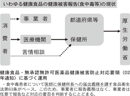 みなと保健所は、混乱の懸念に、「いわゆる健康食品は幅広いため、すべての報告は難しい。『要請』としており、確かにその面はあるが、努力義務で『依頼』」と、歯切れが悪い。