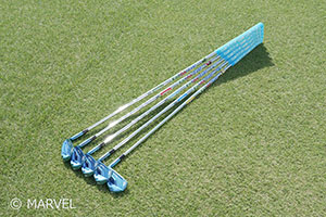 第1弾となるのはマーベルのロゴなどをそれぞれデザインに使用したもので、アイアンセット、パター、グリップ各種の合計6アイテムを販売。ベースとなるギアは、既存のゴルフブランドが展開するもので、今回は、「RomaRo」や「KBS」などとコラボしている。比較的、価格帯の高い上位モデルとなっており、アイアンセット(画像)は税込31万9000円で販売する。
