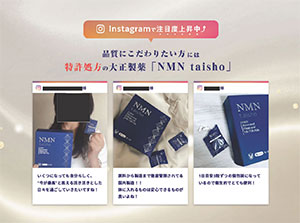 大正製薬は、販売する「NMN taisho」というサプリメントについて、インフルエンサーの投稿を、自社サイトに転載していた。