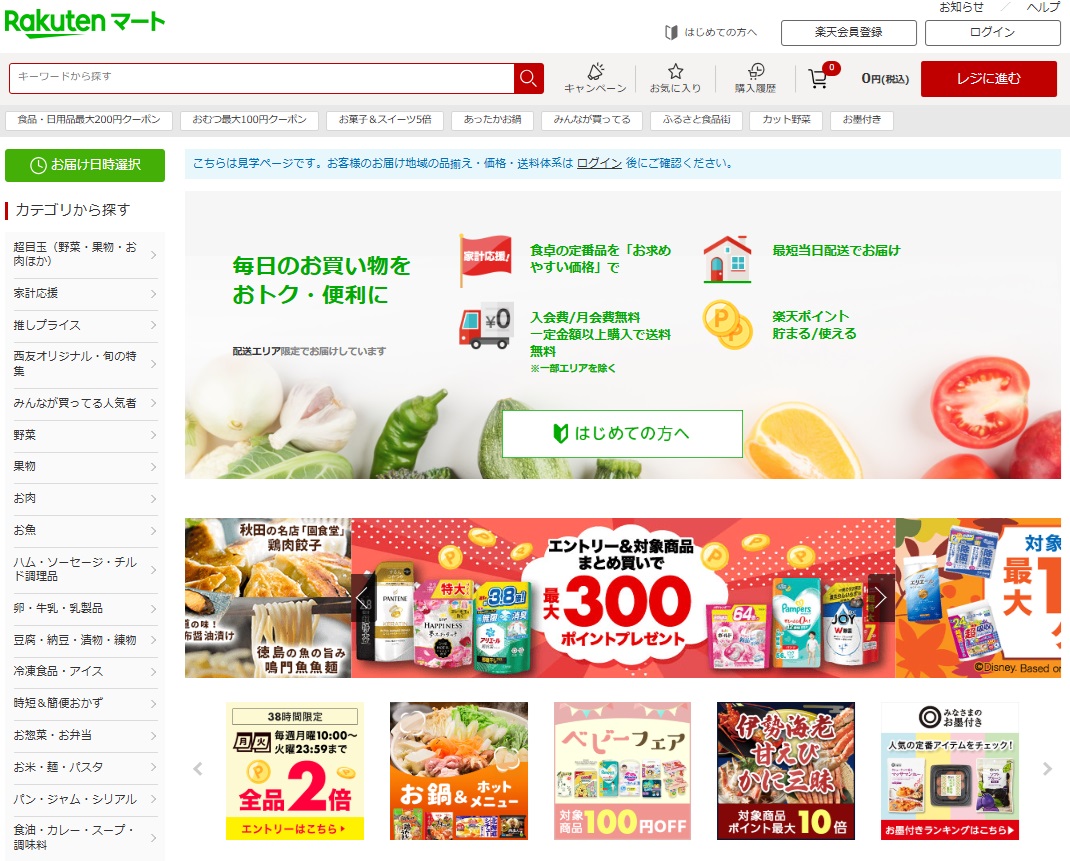 8月8日には、子会社「楽天西友ネットスーパー」の社名を「楽天マート」に変更。これに伴い、9月24日にネットスーパー事業のサービス名も「楽天マート」へと変えた。改称後も、生鮮食品、乳製品、冷凍・冷蔵食品などの食品を中心に、日常生活に必要な商品を、最短で注文を受けた当日中に、ネットスーパー専用倉庫から配送する。