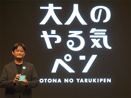 「大人のやる気ペン」は約8㌘の本体デバイスと専用のケース型充電器付きで税込9900円。1月19日から3月15日までクラウドファンディング型ECサイト「マクアケ」で販売。その後、今春からコクヨ運営の通販サイトや出店する楽天市場やアマゾンなどの仮想モールで販売を始める予定。「年間1万台は販売していきたい。(拡販に向けて資格試験などの学習教材を展開する)通信教育企業とプロモーションなどで何かコラボレーションしていくことを検討中」(中居グループ長)とする。