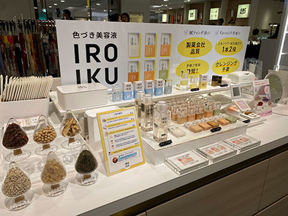 化粧品の製造販売を行う三省製薬は1月15日から28日まで、大丸東京店でスキンケアブランド「IROIKU(イロイク)」のポップアップショップを開催した(=画像)。大丸東京店のショールーミングスペースとの連動やイベント施策が好調で、期間中の来場者数は1日120~150人ほどだった。