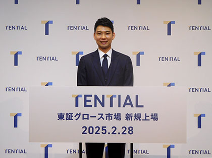 リカバリーウェアブランド「バクネ」を手がけるTENTIAL(テンシャル)は2月28日、東京証券取引所グロース市場に上場した。初値は公開価格の2000円を30%上回る2600円で、終値は2751円だった。都内で会見した中西裕太郎CEO(=写真)は「上場することで『バクネ』はさらに信用力が増し、もっと高く羽ばたける」とした。調達資金は広告宣伝費や商品開発人材の採用、研究開発などに充てる。
