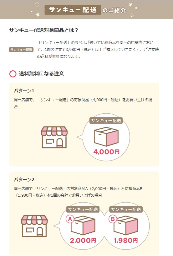 また、Pontaパス会員向けには、対象商品の購入で還元されるPontaポイントを1%増やす優待制度を導入。毎週日曜日には、3980円以上購入するとポイントが4%分増額される。同社では「顧客にさらなる利便性と経済的なメリットを提供できると考え、サンキュー配送の導入に至った」(広報)とする。