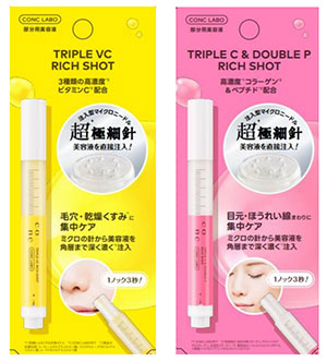 目元や口元、額に使用できる「PCリッチショット」は、3種の高濃度コラーゲンと2種の高濃度ペプチドを配合した。乾燥による小じわを目立たなくする効能評価試験済み。