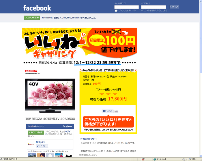 ネットプライス "フェイスブック"で通販、「いいね!」押すごとに値引き