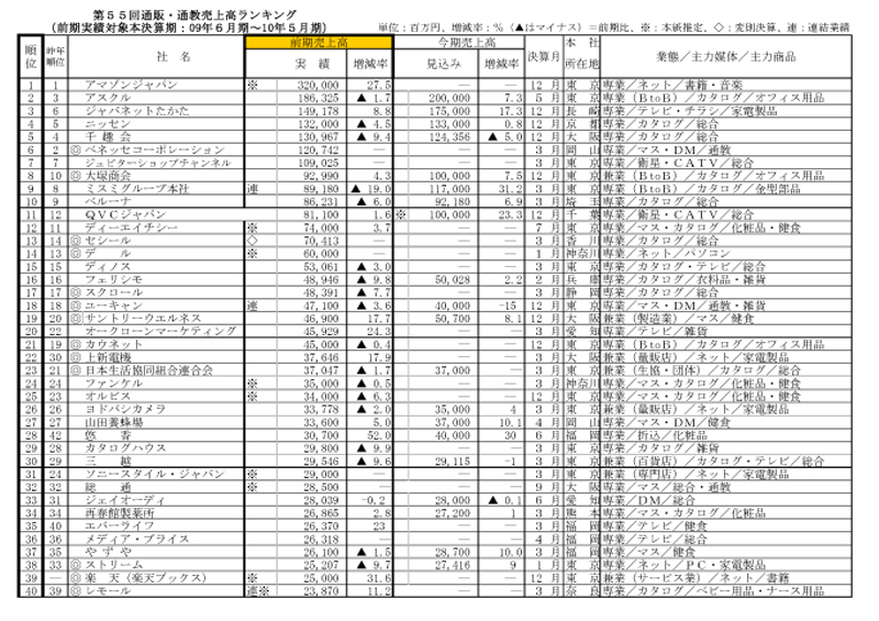 「第55回通販・通教売上高ランキング」 上位300社売上高・市場規模は1%増