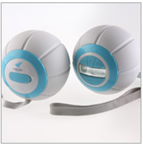 「ぶるぶるボディビート」(税込1万1800円)は、直径8センチメートルのボール型のフィットネス器具。それぞれのボール内には、2つのモーターを内蔵。各モーターの異なる駆動の方向で、複雑にバイブレーションする「3Dムービングシステム」を採用している。また、2段階の負荷調節機能やカウントダウンタイマー機能も備えた。サイズは、直径8センチメートル。重量は約260グラム。