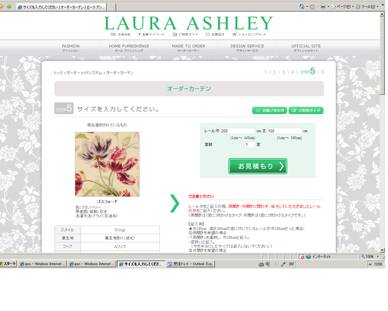 一環として、09年10月にセミオーダーカーテンの受注を開始。日本で縫製した15種類の生地柄と、3種類のカーテン山(ひだ山)のスタイル、10~20センチメートル刻みでの仕上がり丈を選択して好みのカーテンを購入できるようにした。